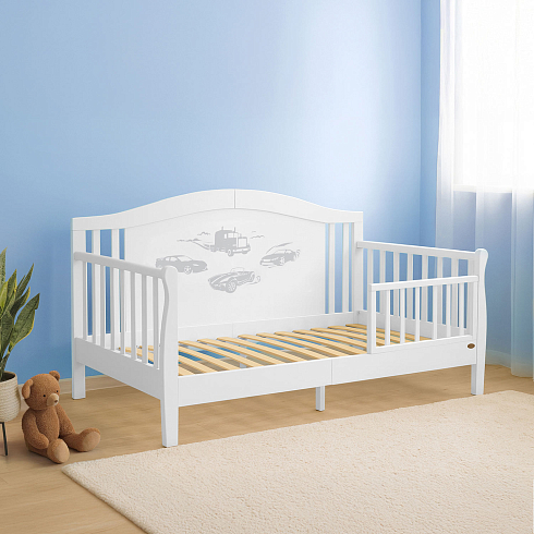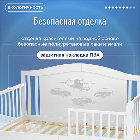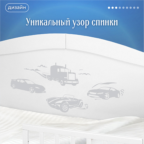 • Спинка оформлена рисунками с автомобильной и музыкальной тематикой, узорами из сердечек и других элементов. • Для покрытия применяются высококачественные красители и лаки на водной основе.