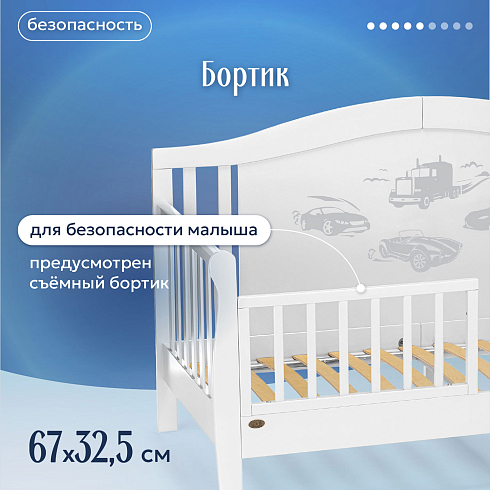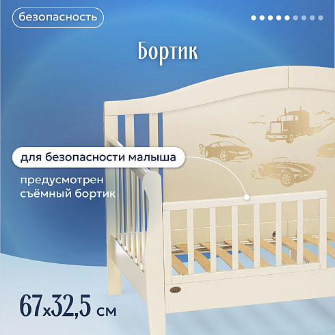 • Для безопасности малыша предусмотрен бортик.