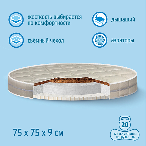Детский круглый матрас Nuovita Nubi 75х75х9 см оптом