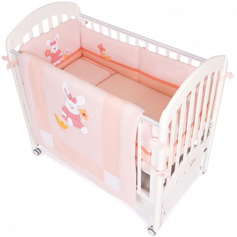 Комплект Feretti  Lapin 6 предметов  выполнен по современным технологиям с использованием натуральных материалов, что характеризует качество продукции Feretti. Бактериостатическое постельное белье предотвращает развитие бактерий, иначе говоря, создает для ребенка гигиеничный климат. Постельный сет создаст уют малышу, и подарят ему спокойные и приятные сны. Наполнитель одеяла и подушки "Ингео" растительного происхождения, произведен из зерен кукурузы. Антиаллергенен. Хорошо удерживает тепло и выводит водяной пар. Наполнитель характеризуется мягкостью и пушистостью. Долго сохраняет первоначальные характеристики. Наполнитель бампера: синтепон. Ткань с бампера можно снимать и стирать.